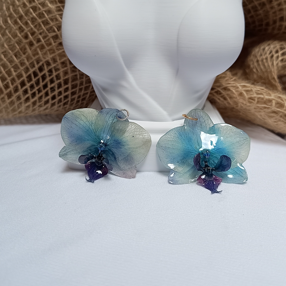 Pingente feito com Orquídea Phalaenopsis Azul podendo conter detalhes Roxos, desidratada e preservada em resina epóxi.